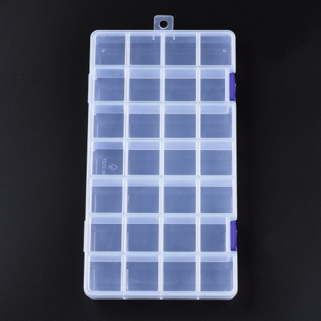 Conteneurs de stockage de perles rectangulaires en polypropylène (PP), boîtes de rangement à 28 compartiments, avec couvercle à charnière, pour bijoux petits accessoires, transparents