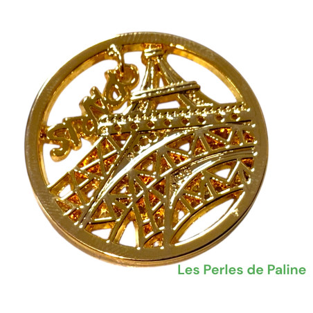 Cabochon estampe en métal de 33mm Epaisseur environ 5mm Origine Asiatique. Produit non remisable. Avec petite Breloque "Paris"
