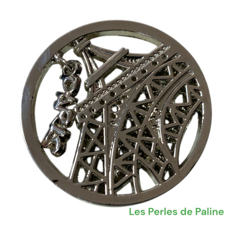 Cabochon estampe en métal de 33mm Epaisseur environ 5mm Origine Asiatique. Produit non remisable. Avec petite Breloque "Paris"