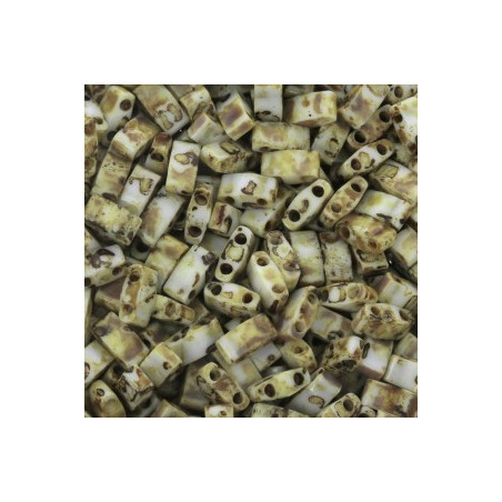Perles Half Tila, Rectangles plates à 2 trous parallèles. Elles sont compatibles avec les "Tilas" Beads. Sachet de 5 g soit environ 125 perles. Longueur : 5 mm Largeur : 2.5 mm Epaisseur : 1.8 mm Diamètre du trou : 0,75 mm Diamètre du fil : 0.7 mm Matière : Verre Origine : Japon