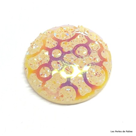 Cabochon en Résine 30mm Blanc Irisé Pailleté (X1)