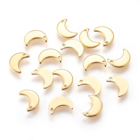 Breloques en acier inoxydable 304, lune, doré