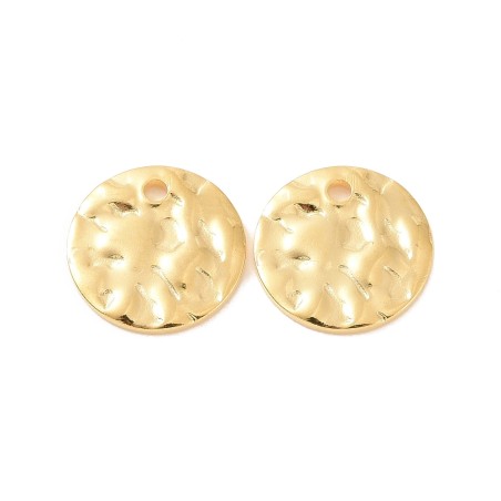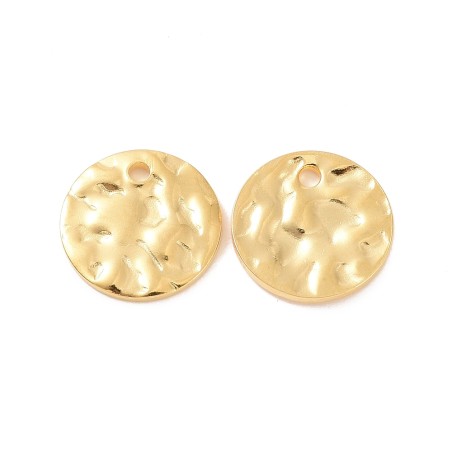 Placage ionique (IP) 304 breloques en acier inoxydable, texturées, breloques rondes plates, dorées