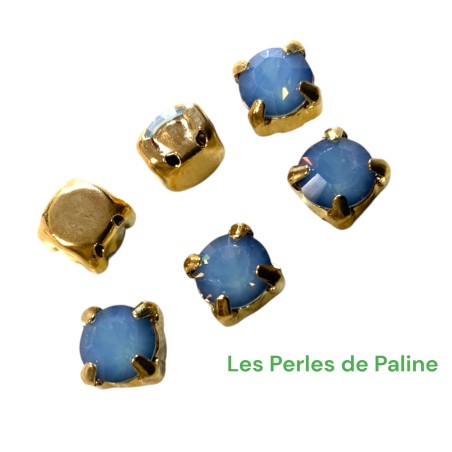 Cabochons "Chatons" référence Swarovski 1028. Forme identique au cabochon 1028. Diamètre : 6 mm, sertis 4 trous (en croix).