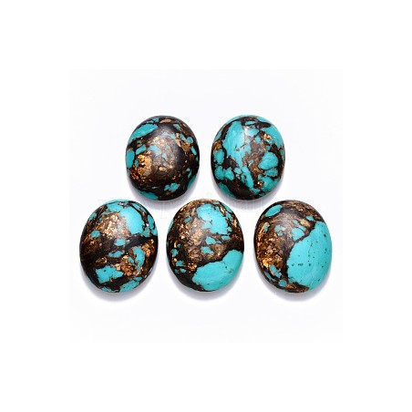 Cabochons de bronzite naturelle et de turquoise synthétique assemblés, teints, ovales, turquoise