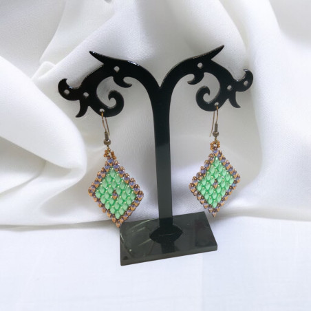 Boucles d'Oreilles Unique Losange Duo Vert D'Eau/Bronze (x1)