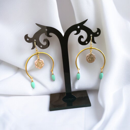 Boucles d'Oreilles Unique Rose Rose et Vert d'Eau (x1)
