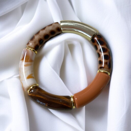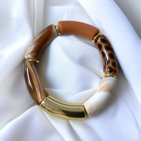 Bracelet Résine Mix Camel Doré élastique (x1)