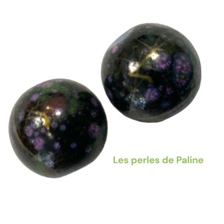 Perle en verre de Bohême 12mm Vert/Noir Marbré (x1)