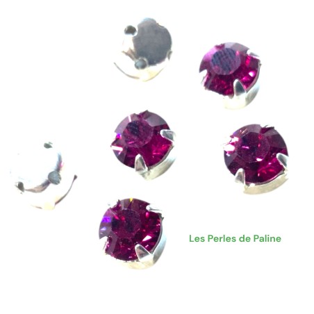 Cabochons "Chatons" référence Swarovski 1028. Forme identique au cabochon 1028. Diamètre : 6mm, sertis 4 trous (en croix).
