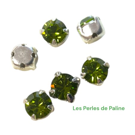 Cabochons "Chatons" référence Swarovski 1028. Forme identique au cabochon 1028. Diamètre : 6 mm, sertis 4 trous (en croix).