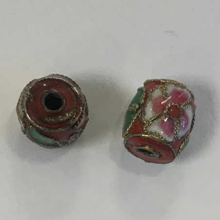 Perle Cloisonnée tonneau 8x10mm Rouge (x1)